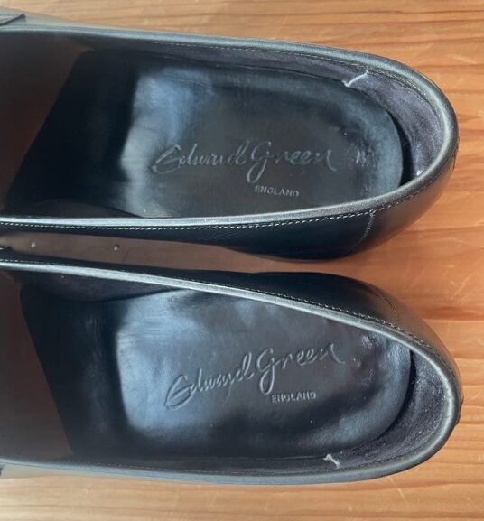 これは単なる産地表示ではなく、エドワード・グリーンという職人集団がプライドを持って作り上げたという、製造主体への強い誇りを示しているんですね。私自身もこの「MADE BY」の文字を見るたびに、当時の職人たちが一足一足に込めた熱量を想像して胸が熱くなります。