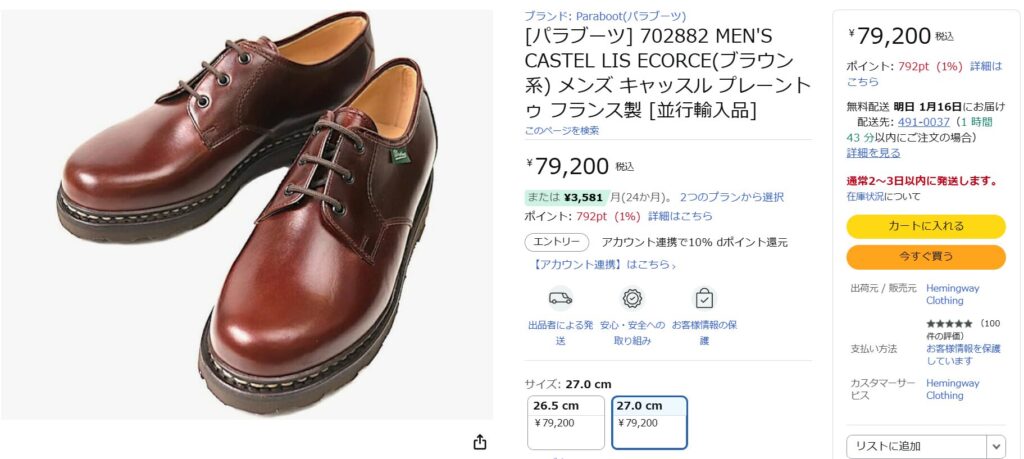 日本の正規店になくても、本国フランスやイギリス、北欧のセレクトショップなどでは在庫が残っている場合があります。「Paraboot Castel Noir 702803」と検索し、海外のショップから個人輸入を検討してみてください。